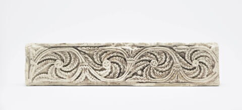- Décor : rinceau végétal ; tige ; rosace ; croix ; fleur